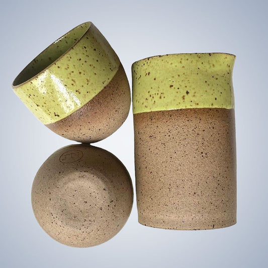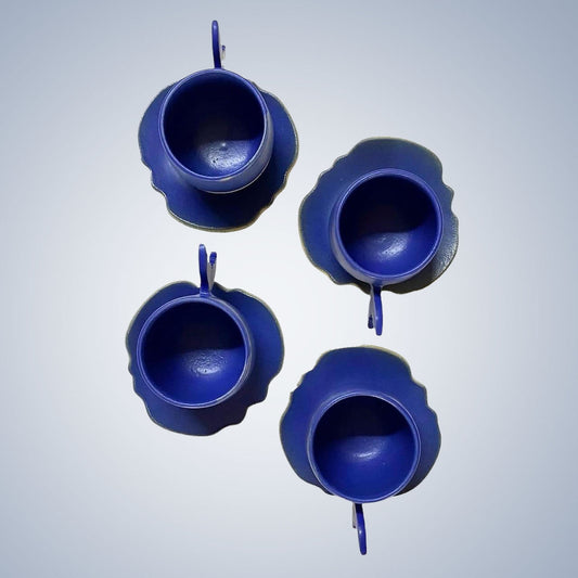 Jogo de 4 Xícaras "Rabo de Peixe" e Pires "Estrela" em cerâmica