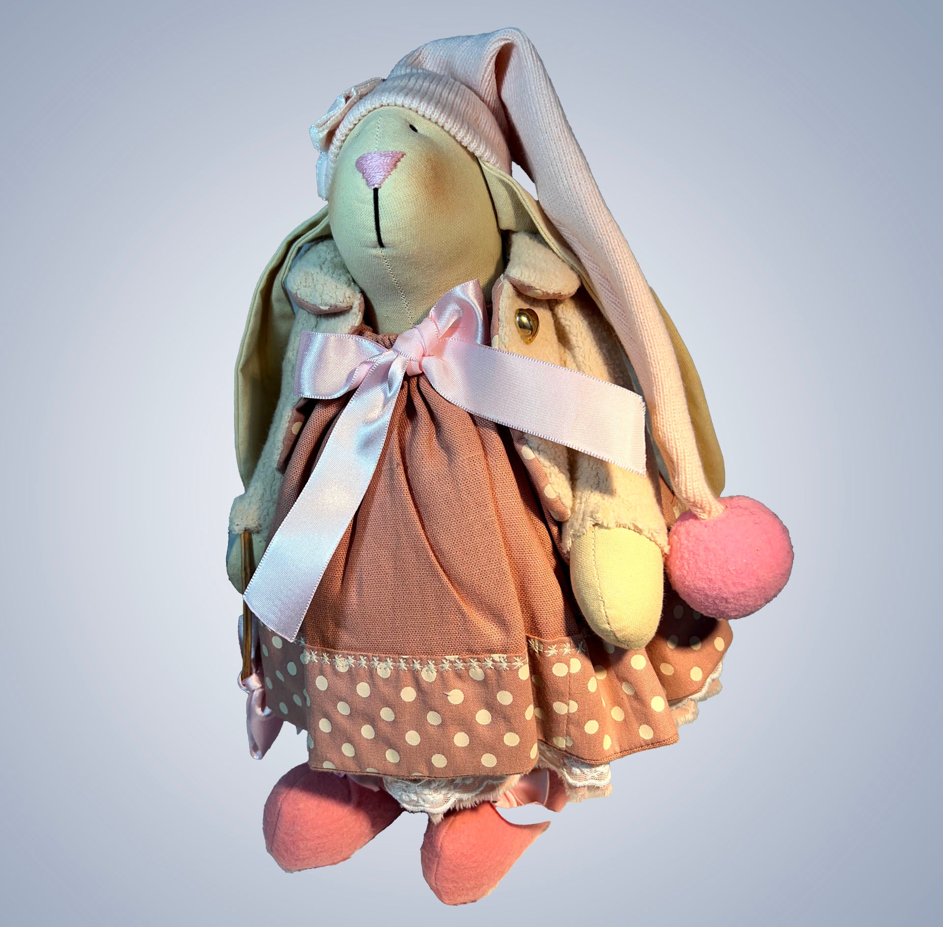 In a world where tenderness finds its purest form, a pink bunny dances among dreams. Her polka dot dress, dotted like shooting stars in a silk sky, reflects the sweetness of her romantic soul.