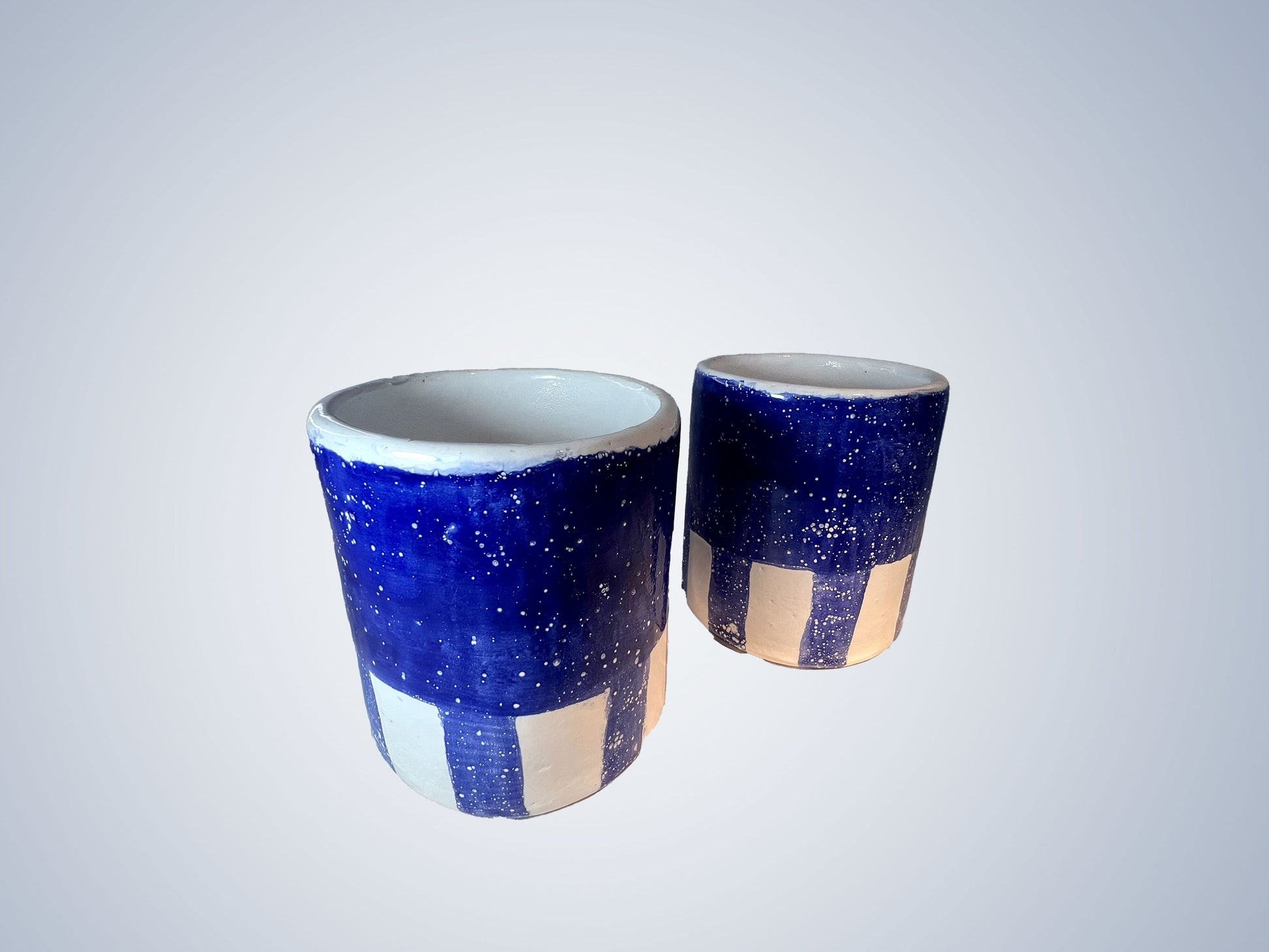 Porcelain planter, hand-shaped and hand-glazed with the delicacy of a work of art. In shades of blue and white, this charming accessory is not only functional, but a piece of elegance and charm that transforms any space. The enamel, applied with care, creates a shiny, non-toxic finish, safe for storing your kitchen utensils and supplies. The blue and white colors bring a sense of calm and timeless beauty.