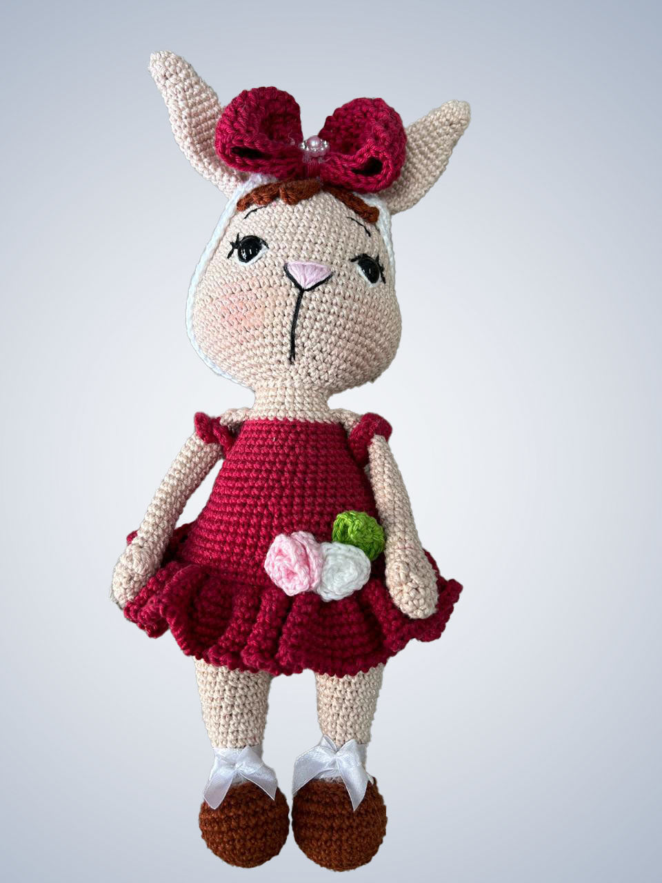 With her vibrant red dress and cute ears, the bunny is a symbol of charm and style. The carefully crafted dress adds a festive and cheerful touch to her appearance, making her a perfect choice for decorating children’s rooms, giving as a gift to someone special or simply adding a touch of cuteness to your home.