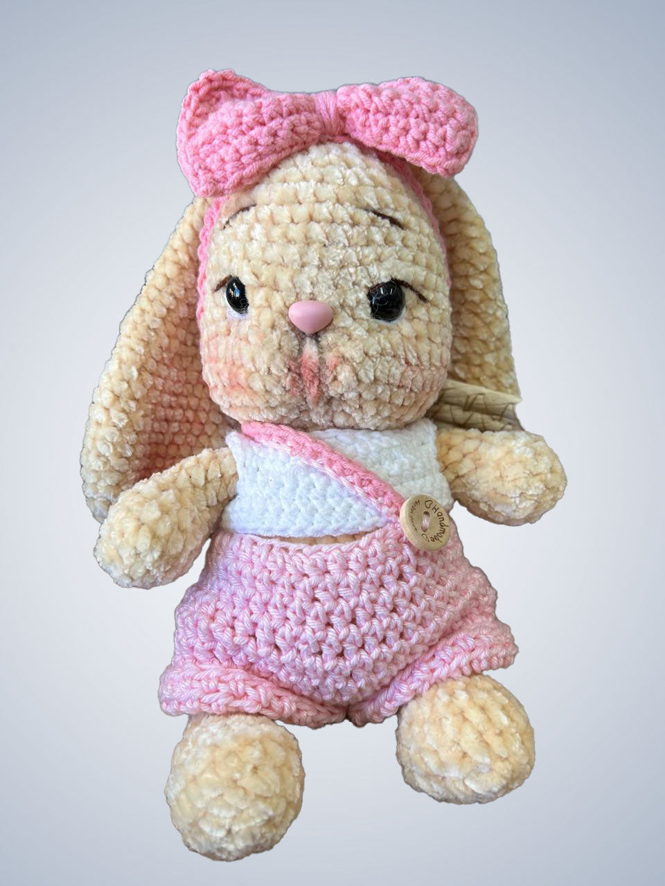 Each crochet stitch is made with attention to detail, ensuring that the bunny is a durable and cozy piece. Her charming appearance and soft touch make her a lovely companion for all ages, and a symbol of the love and dedication that manual art can convey.