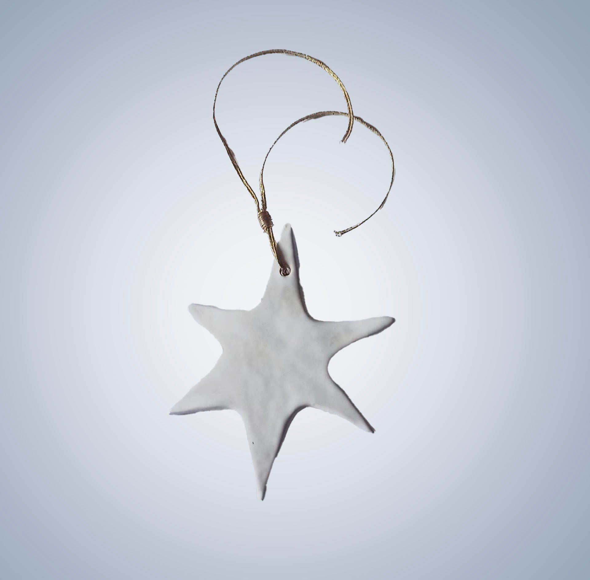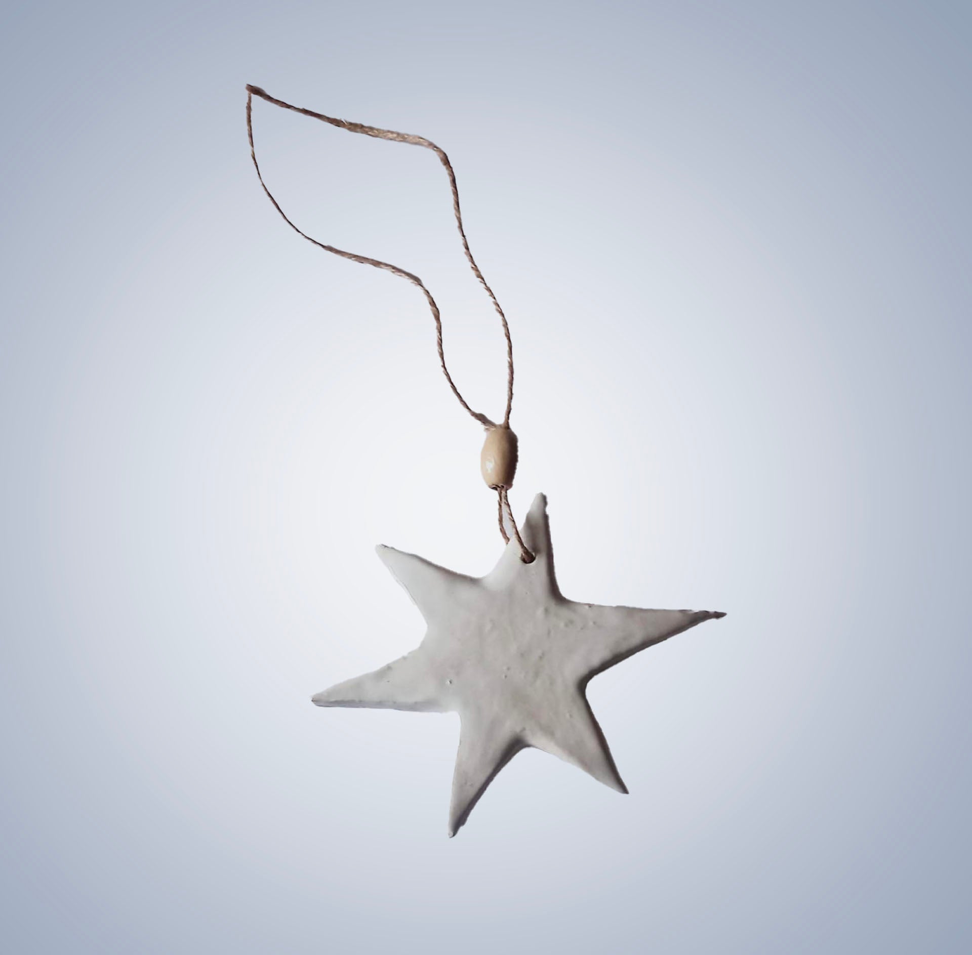 Três estrelas, moldadas com o toque único da argila branca, aguardam para iluminar seu Natal com encanto. Como um sopro de neve e luz, cada peça traz o aconchego de mãos habilidosas e a simplicidade poética do feito à mão. Perfeitas para decorar árvores, janelas, ou aquele cantinho especial, estas estrelas são mais que enfeites: são pequenos brilhos de carinho, esperando trazer calor e magia ao seu lar.