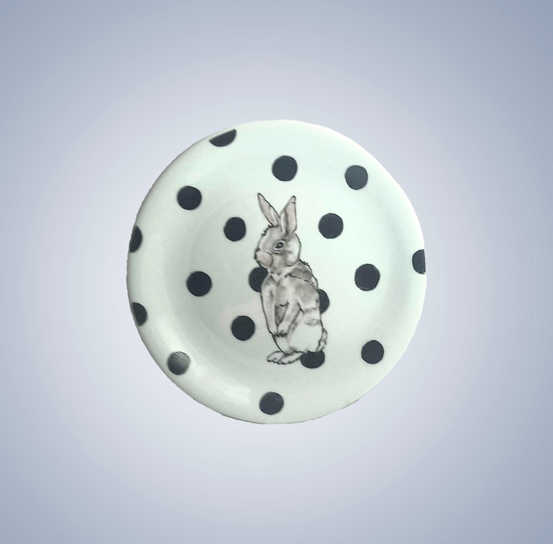 Hand-painted porcelain plate - Rabbits with Polka Dots