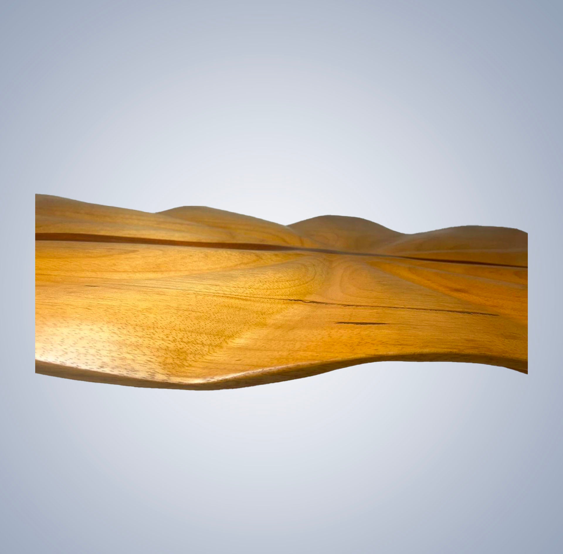 Composta por madeiras Tauari e Pau Brasil, essa peça não apenas reflete a fluidez e a força da água, mas também a resistência e a beleza da terra de onde essas madeiras se originam.