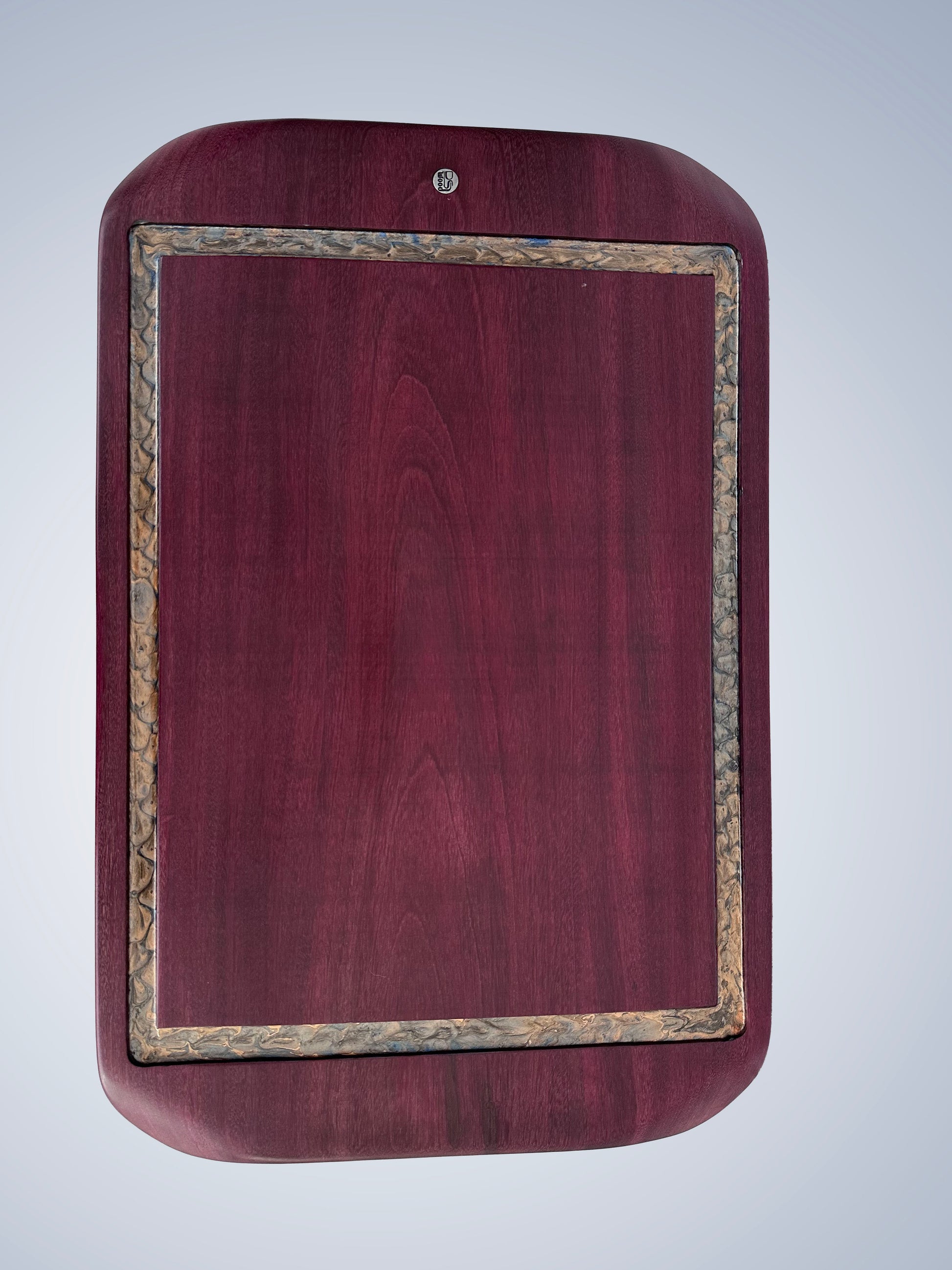 A madeira roxinha, com seus veios únicos e tonalidade profunda, traz um toque de elegância à sua cozinha, tornando cada corte e preparo um momento especial. Sua cor naturalmente rica e distinta faz com que esta tábua se destaque, adicionando charme a qualquer ambiente culinário.