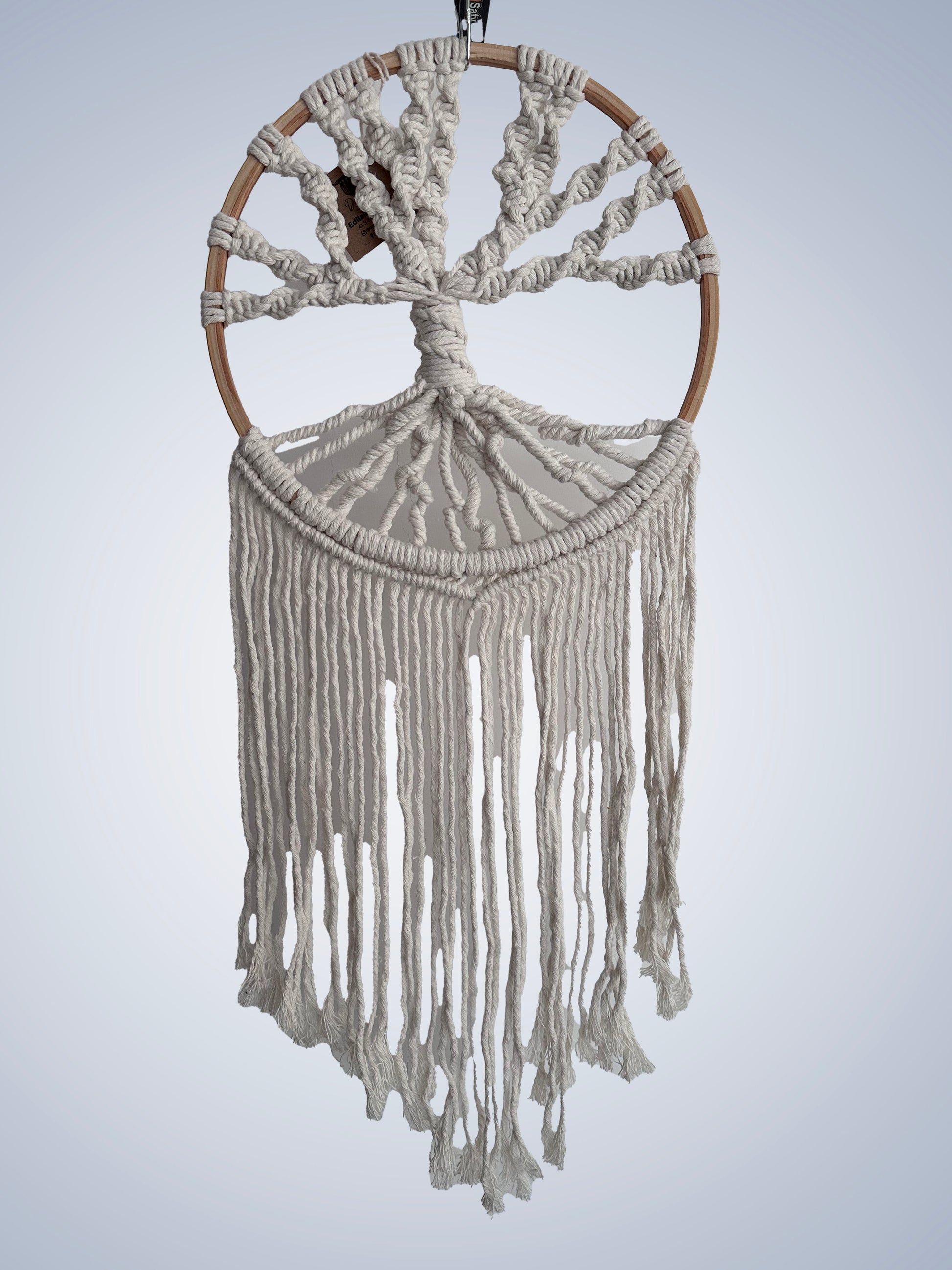 Nascida das mãos habilidosas da artesã e inspirada pela eterna dança da natureza, surge a majestosa Árvore da Vida em macramê. Cada fio de algodão, é entrelaçado com precisão e carinho para criar uma obra de arte que celebra a beleza e a complexidade do mundo natural.