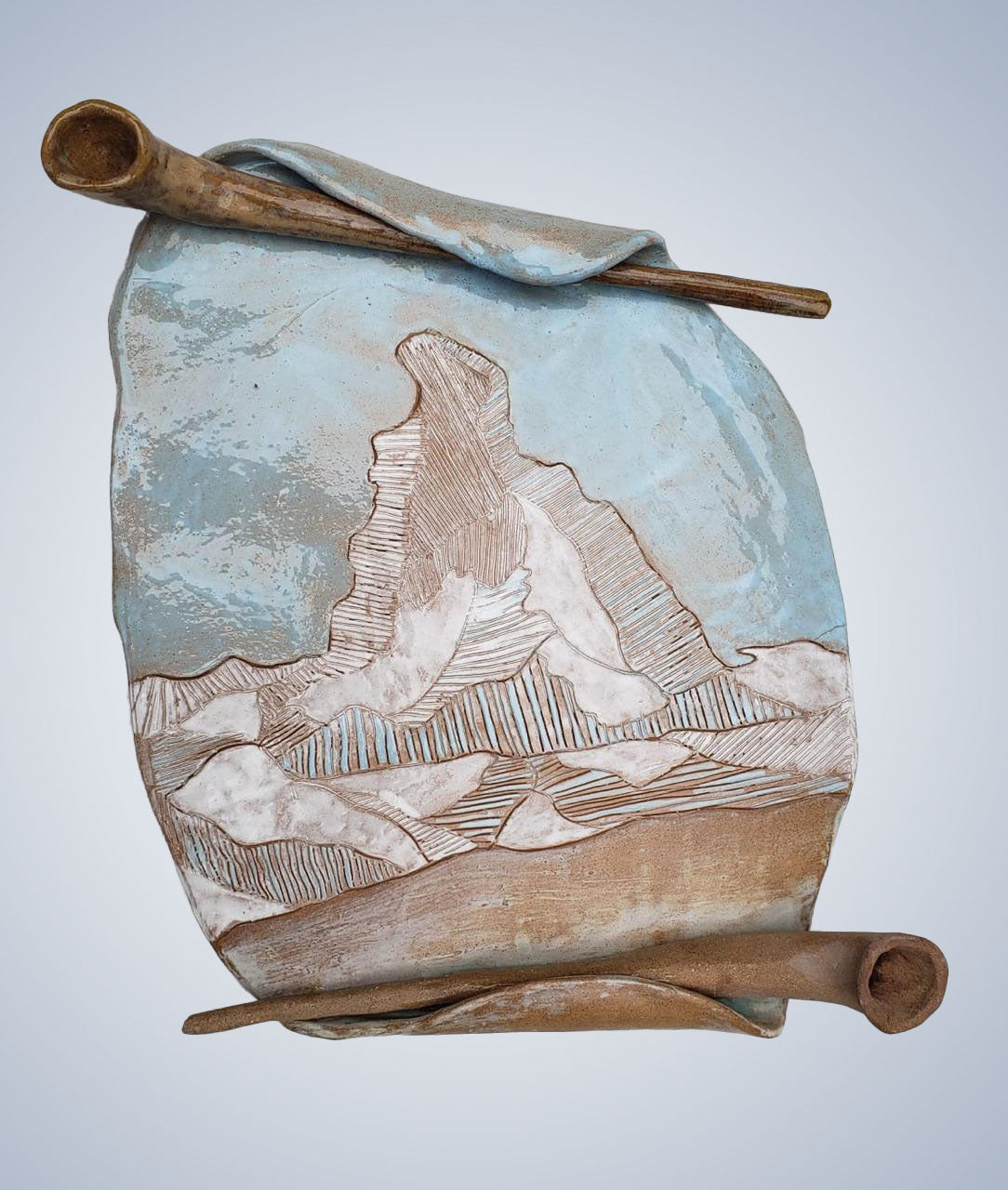 Esta peça multicolorida é inspirada na majestosa montanha suíça, capturando a beleza e a grandiosidade da natureza em cada detalhe.