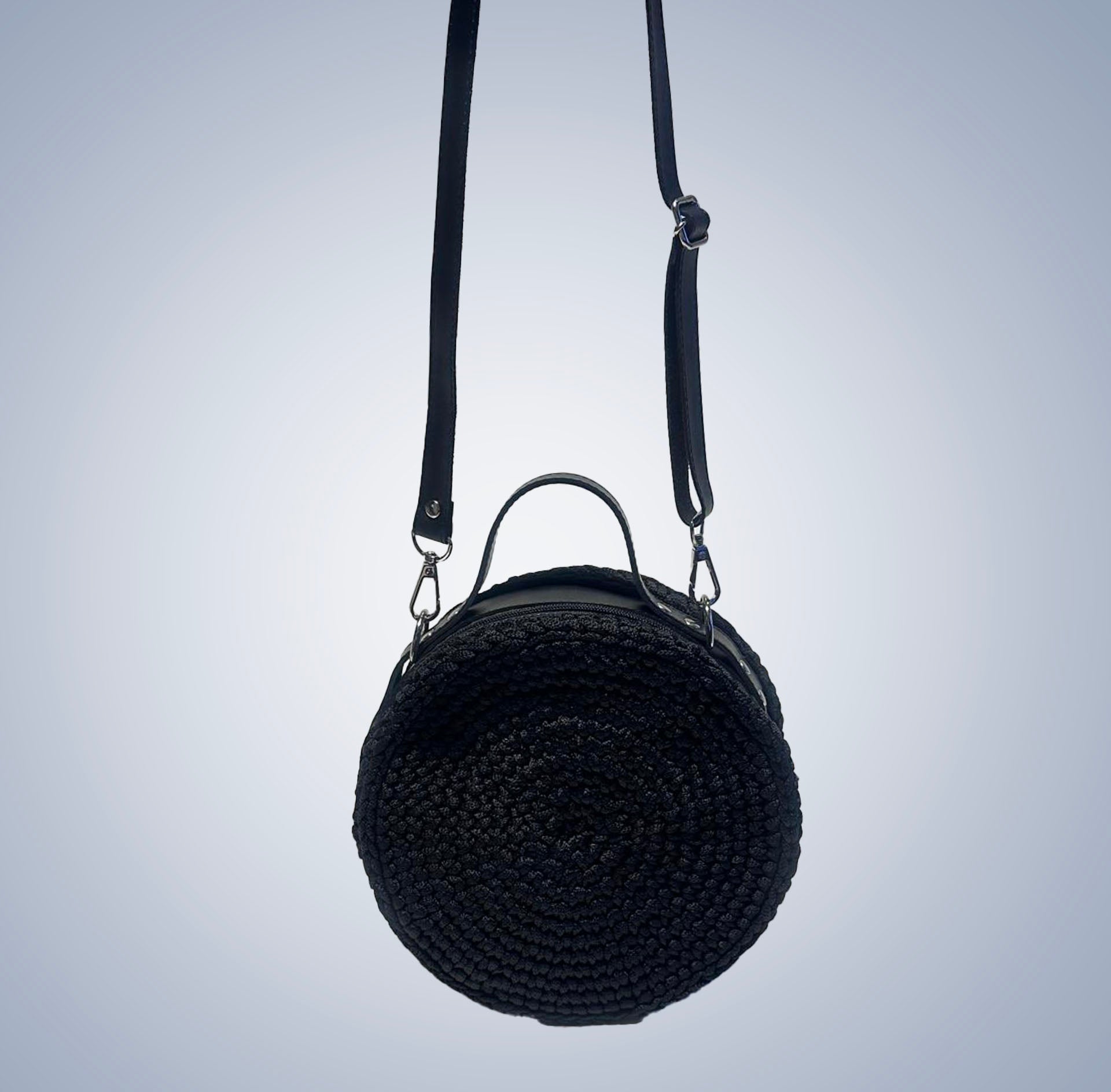 Com seu formato redondo e elegante, a bolsa oferece uma aparência única e moderna que se destaca entre os acessórios convencionais. Feita à mão com a técnica de crochê, ela combina a beleza texturizada da arte com um design contemporâneo, ideal para quem busca um item de moda que realmente faça a diferença.