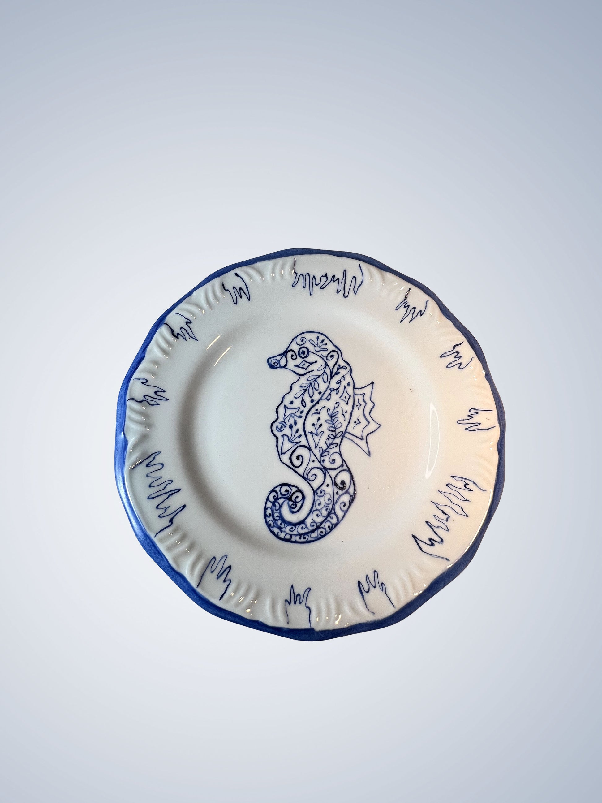 Prato de porcelana pintado à mão - Cavalo Marinho