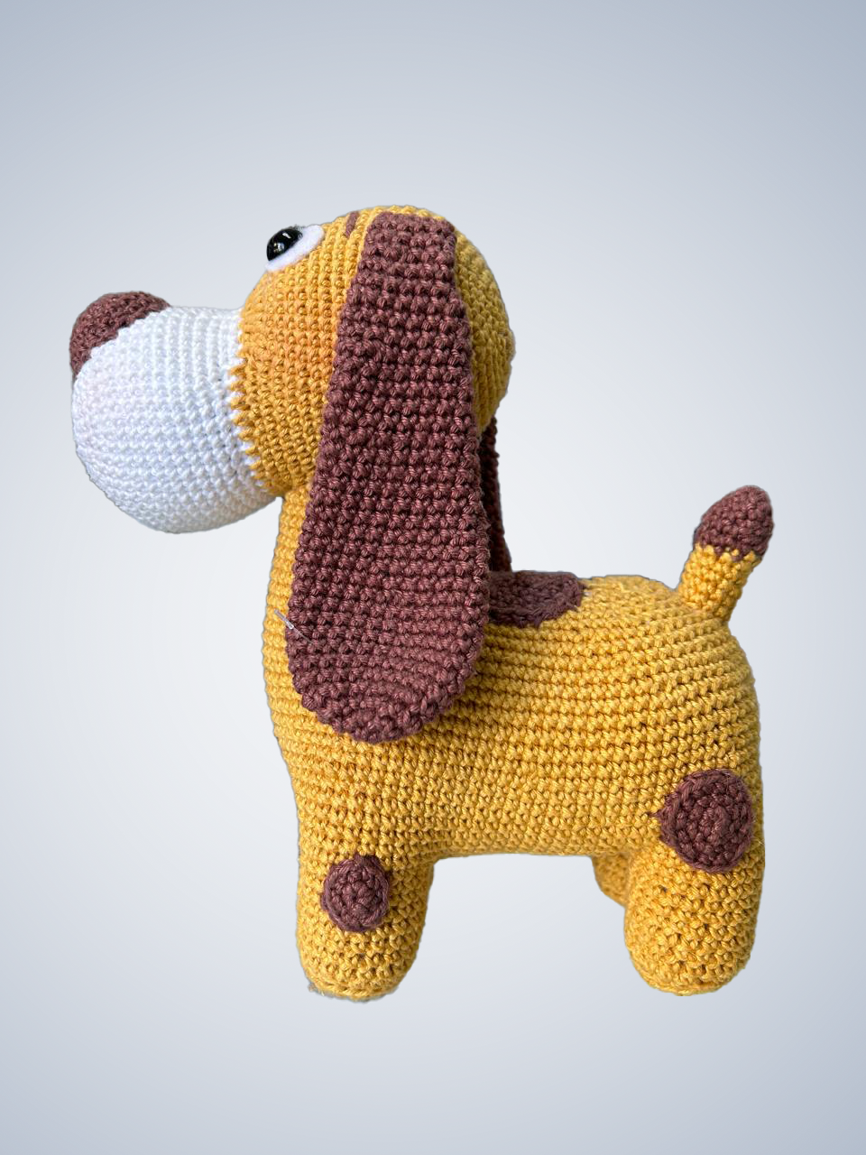 Seu design único, com olhos brilhantes e um focinho simpático, traz um toque de ternura e alegria a qualquer ambiente. Cada ponto de crochê é feito com precisão, garantindo que o resultado final seja uma peça resistente e durável, pronta para ser amada por muitos anos.