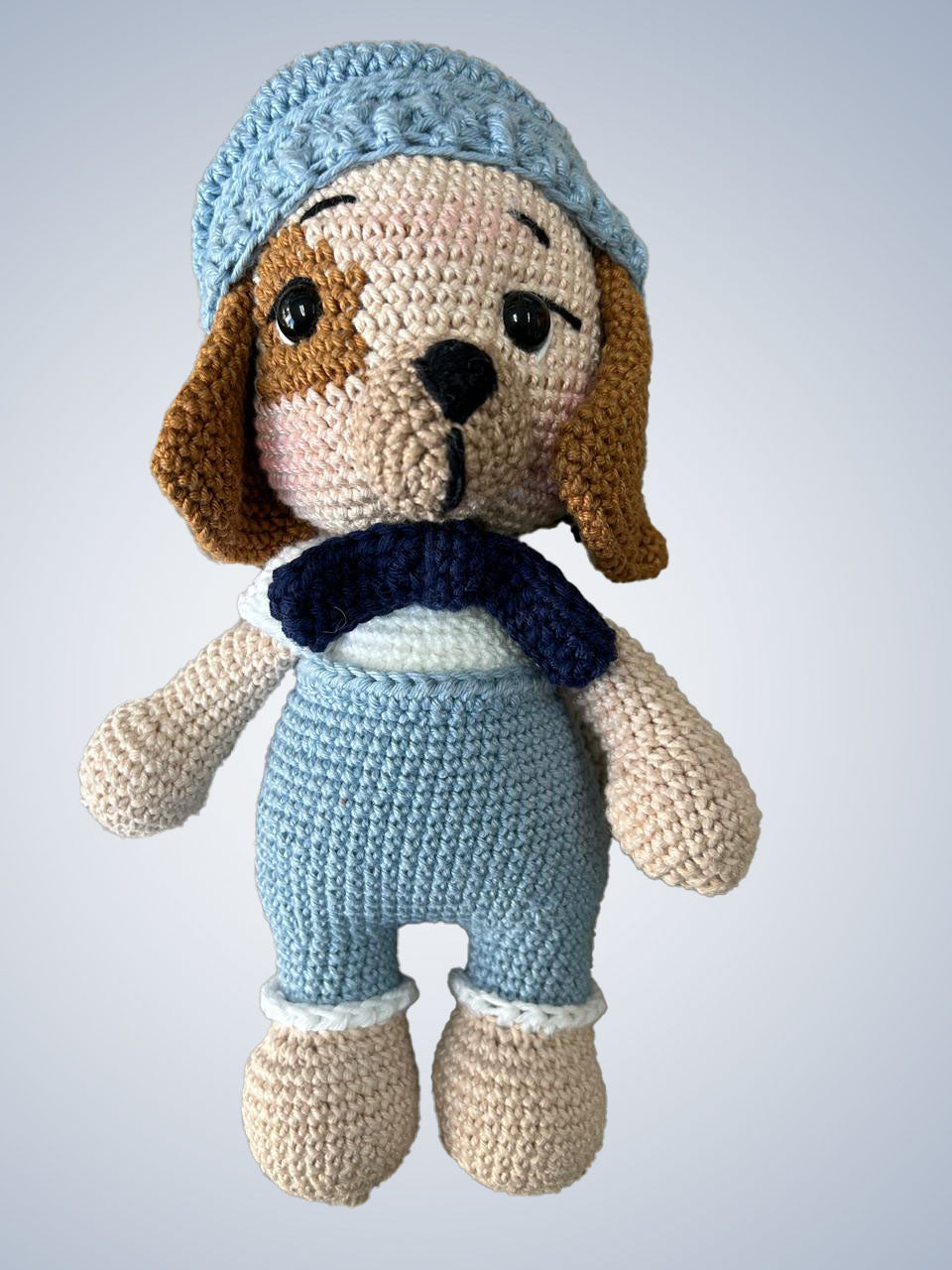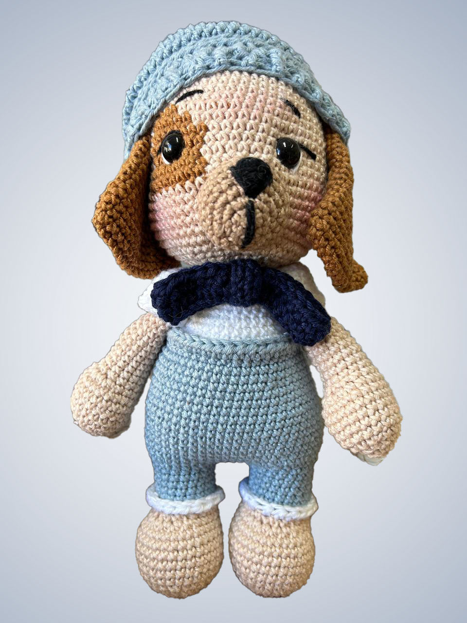 Este simpático cachorro em amigurumi é um exemplo perfeito da arte feita à mão com carinho e habilidade. Criado com a técnica japonesa de crochê conhecida como amigurumi, este cachorrinho é cuidadosamente elaborado com fios de alta qualidade e enchimento macio, dando vida a um companheiro fiel e acolhedor.