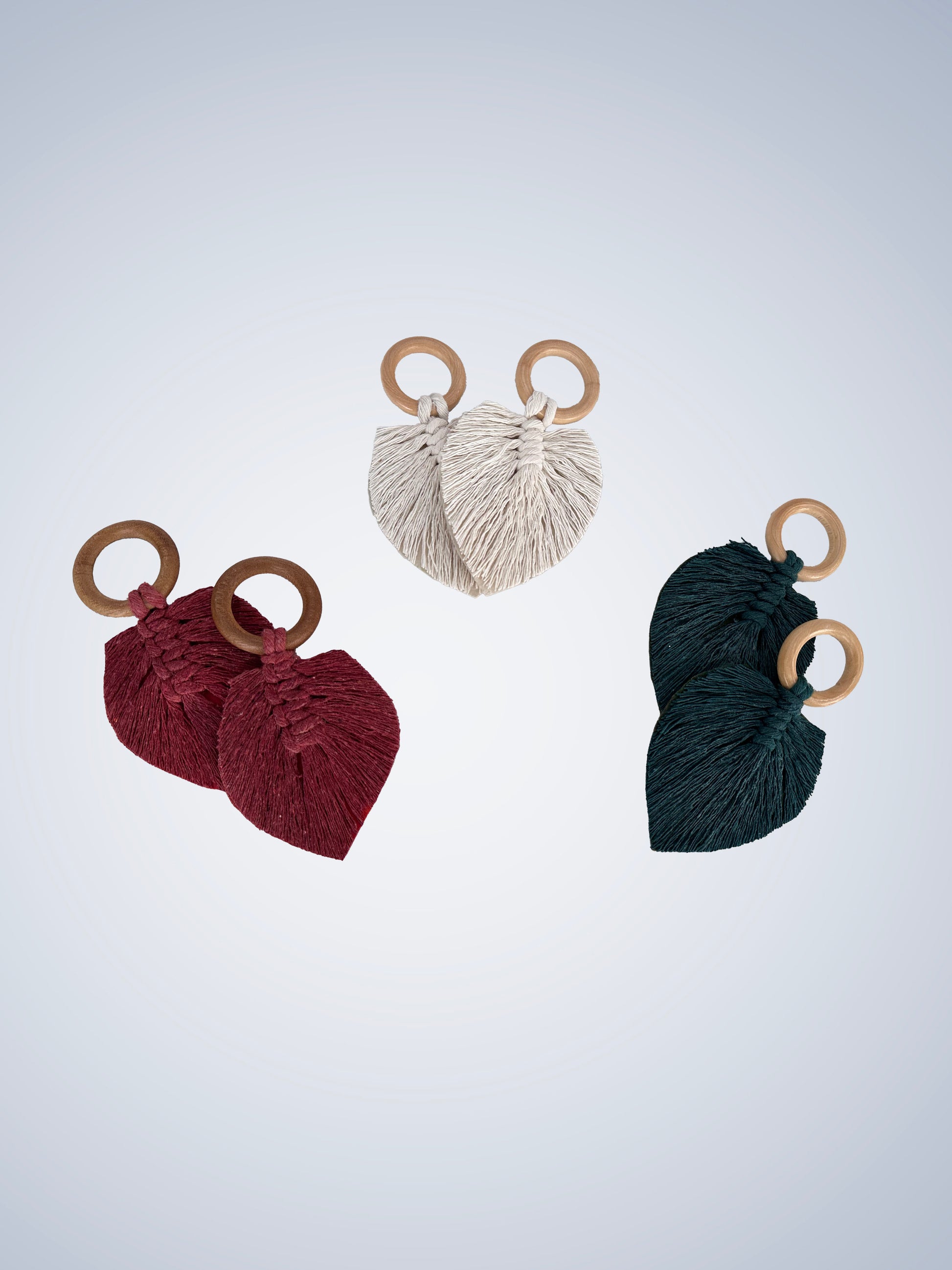 Feitos à mão, estes porta-guardanapos combinam a beleza natural do macramê com a forma graciosa das folhas.