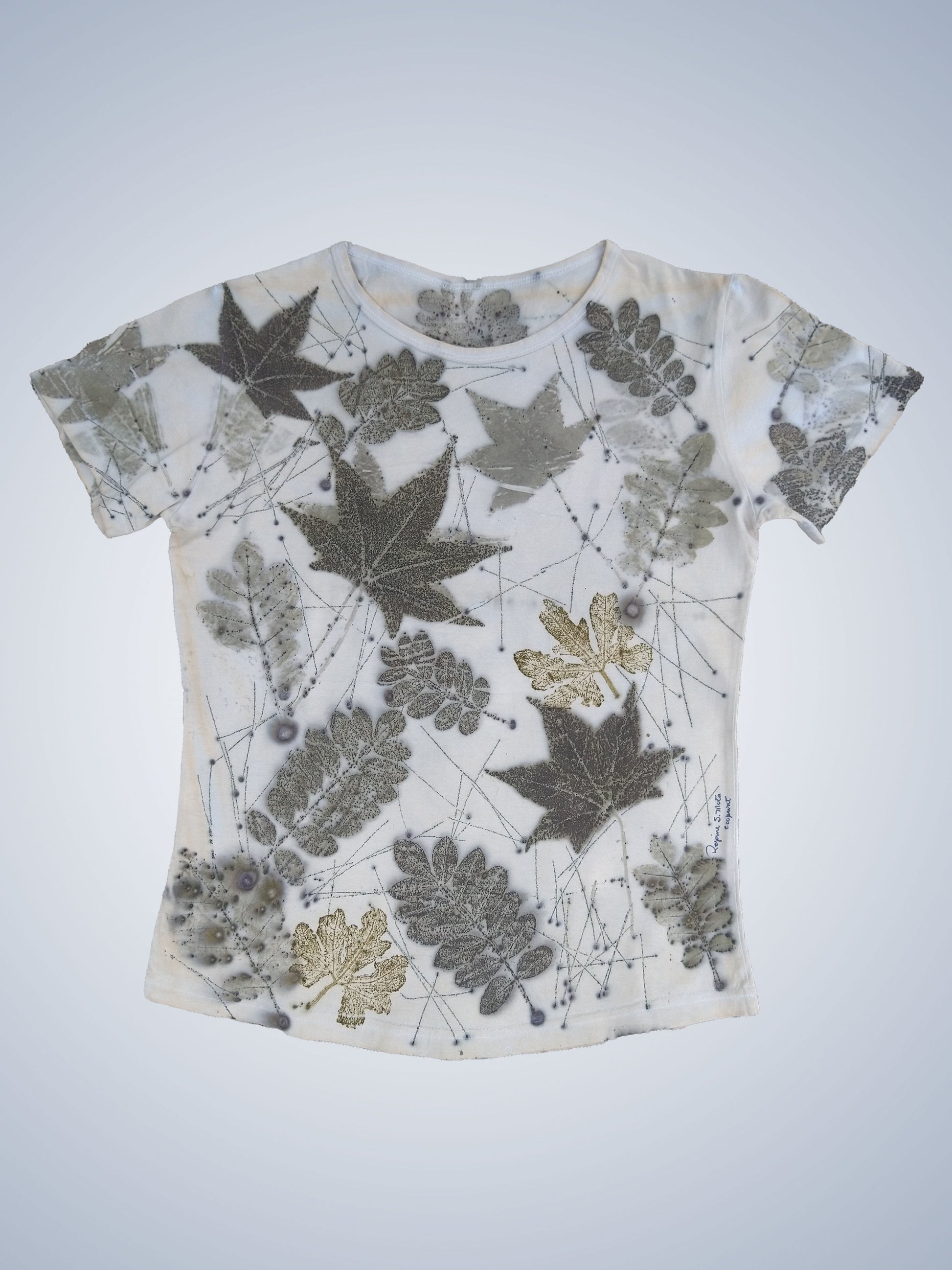 Camiseta em ecoprint "Natureza impressa" - modelo baby look