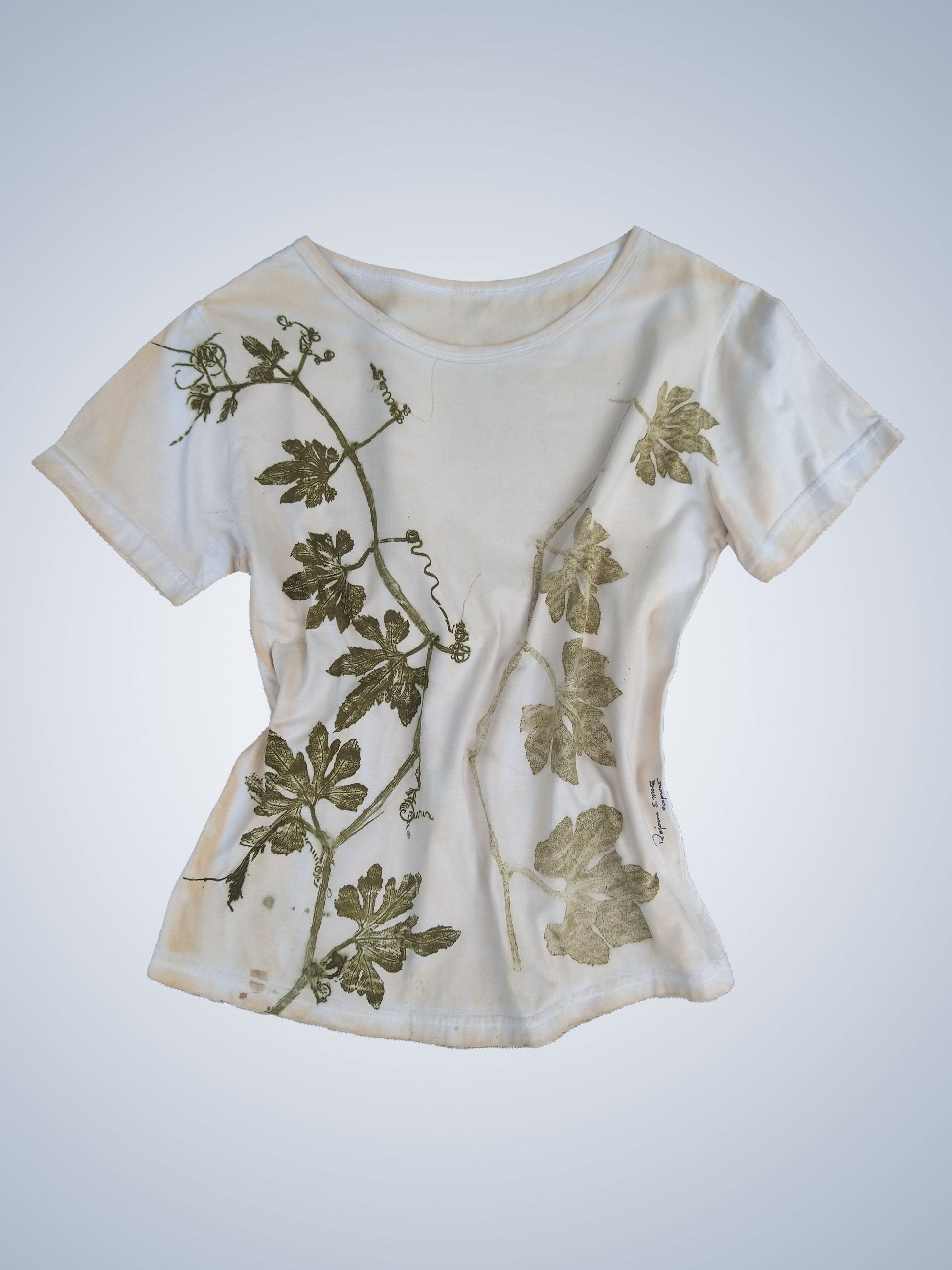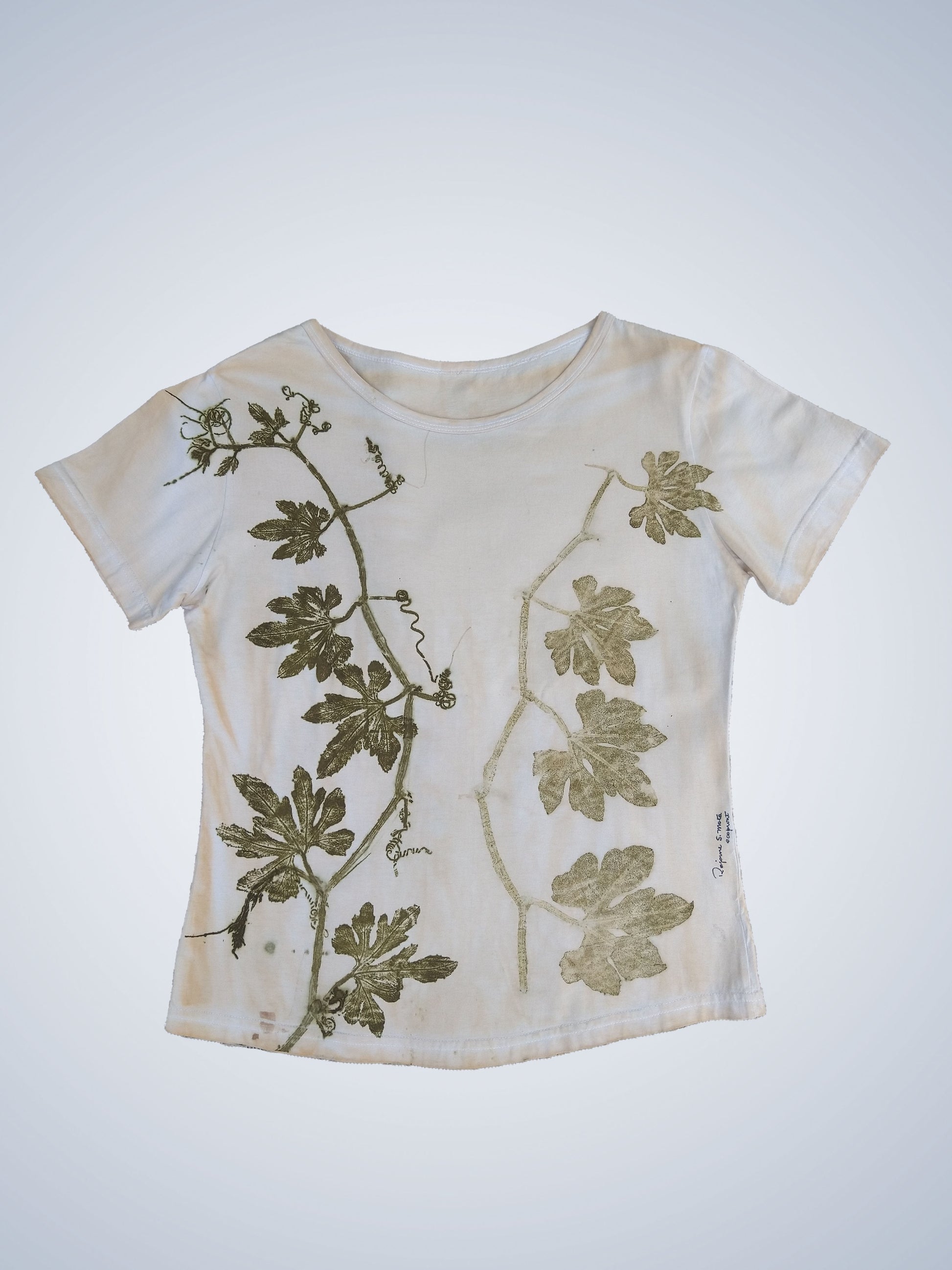 Camiseta em ecoprint "Natureza - Melão de São Caetano" - modelo baby look