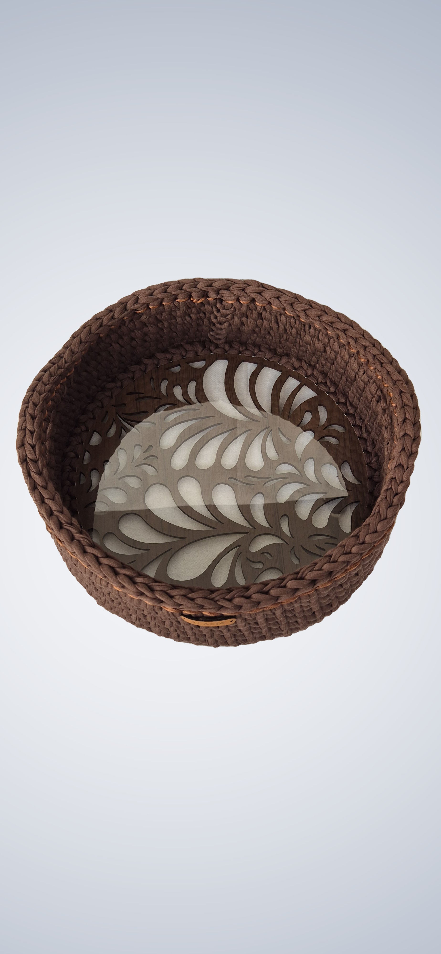 A base em madeira oferece uma estrutura firme e durável, enquanto o fio de malha acrescenta um toque artesanal que torna cada peça única. O design versátil e acolhedor do cesto é perfeito para complementar qualquer decoração, seja em um café da manhã relaxante ou em um jantar mais formal. Combinando beleza e praticidade, este cesto de pão é uma peça indispensável para quem valoriza o trabalho manual e a qualidade.