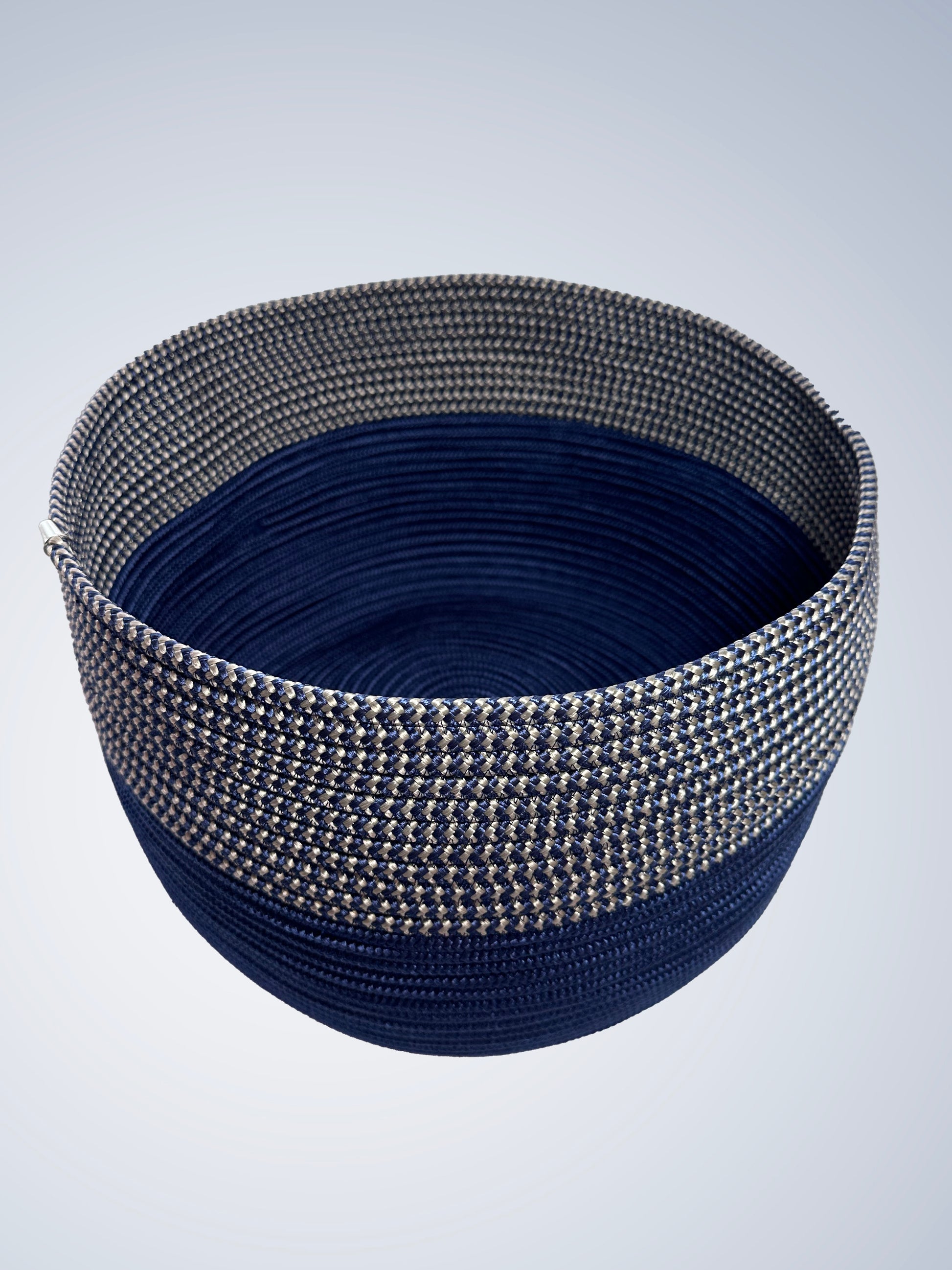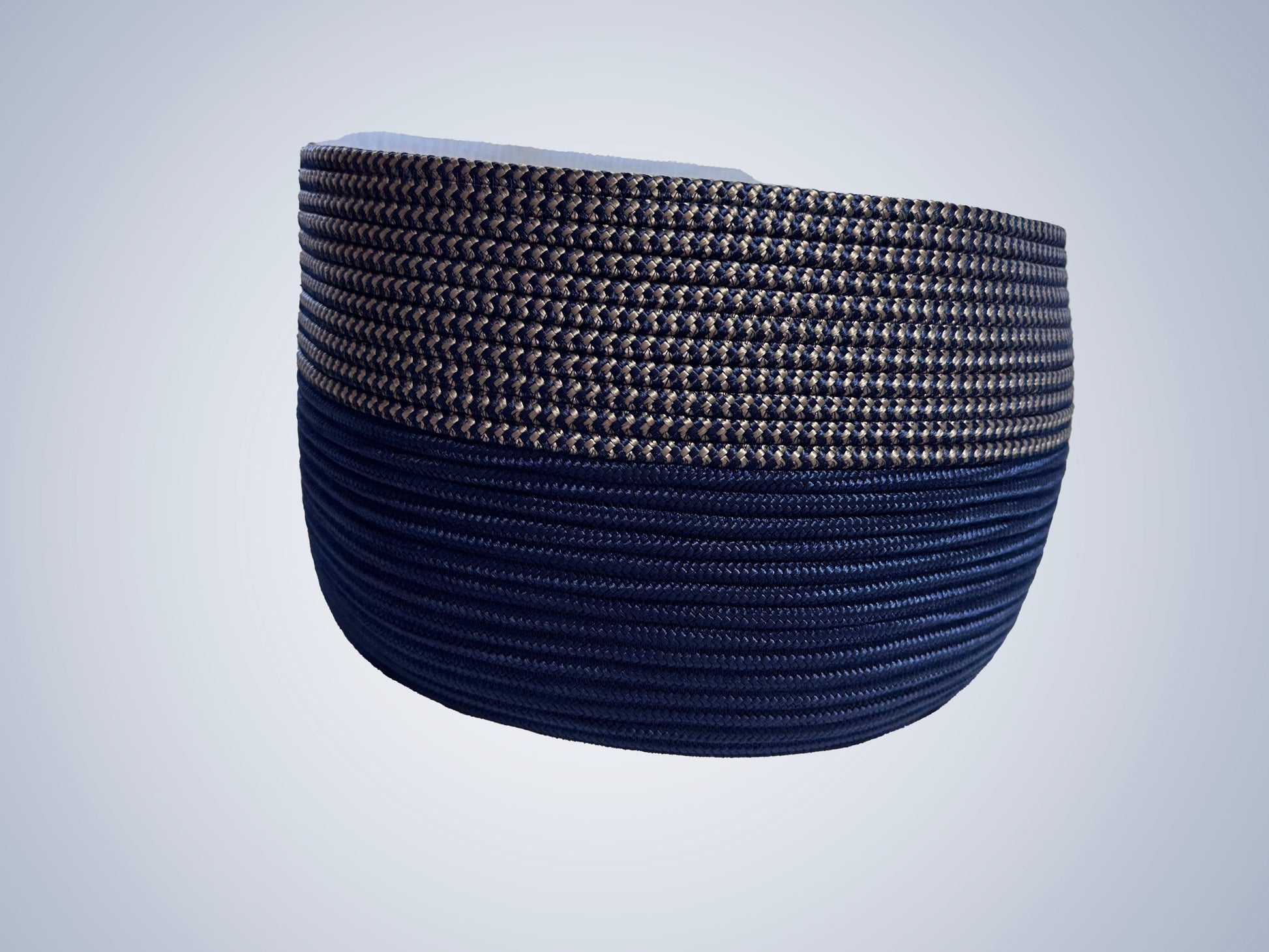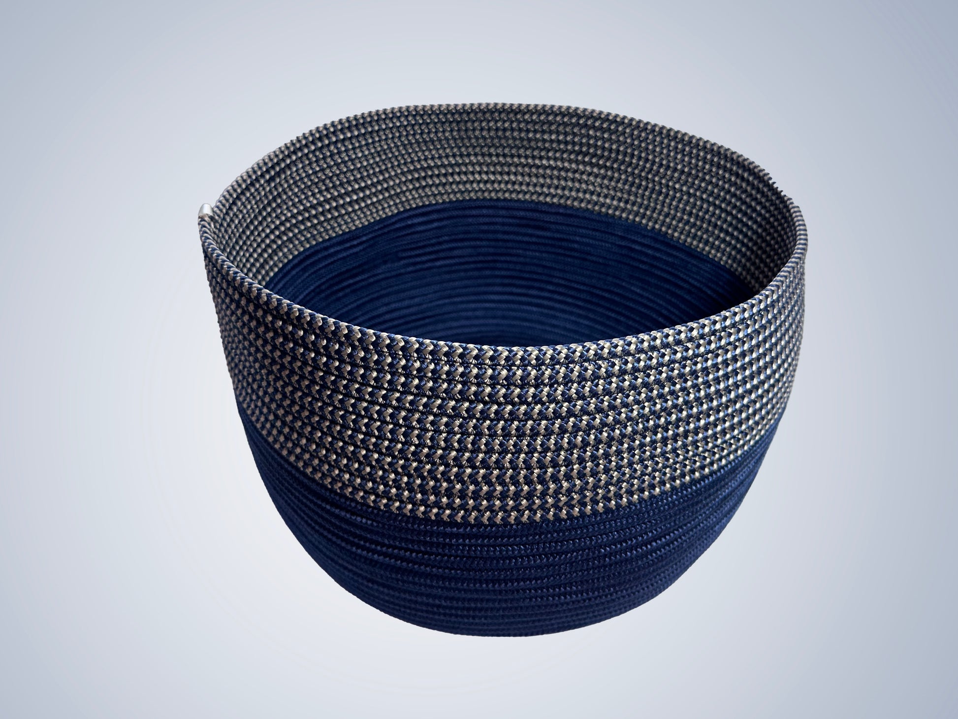 Descubra a beleza e robustez do nosso cesto azul em corda náutica de 8mm, uma peça que une a força dos mares à delicadeza do artesanato.