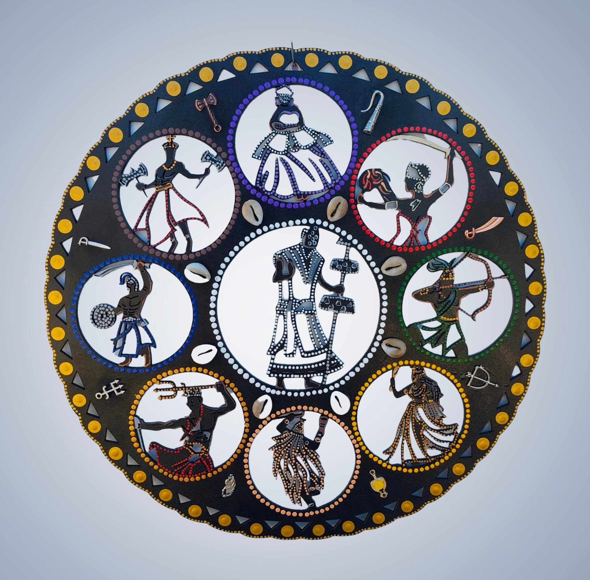 A Mandala 9 Orixás, criada com a técnica de pontilhismo, é uma peça única que une a habilidade artística com o profundo significado espiritual. Milhares de pontos são cuidadosamente aplicados para criar uma mandala que representa a união e a energia dos nove orixás, refletindo suas características e influências únicas.