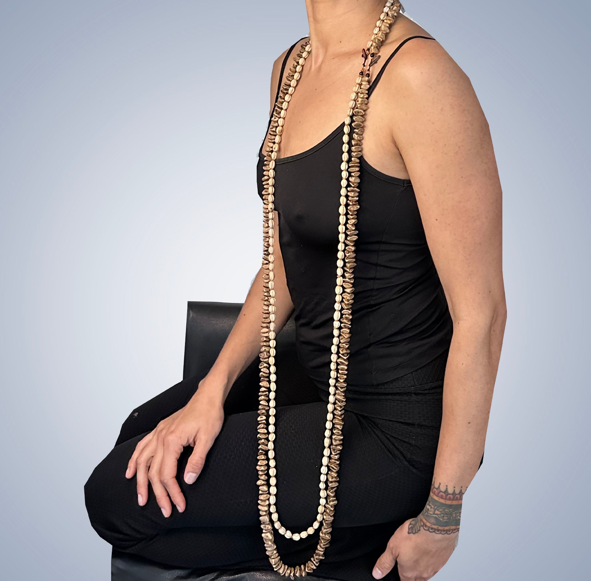 Colar comprido, cascalho de semente de buriti