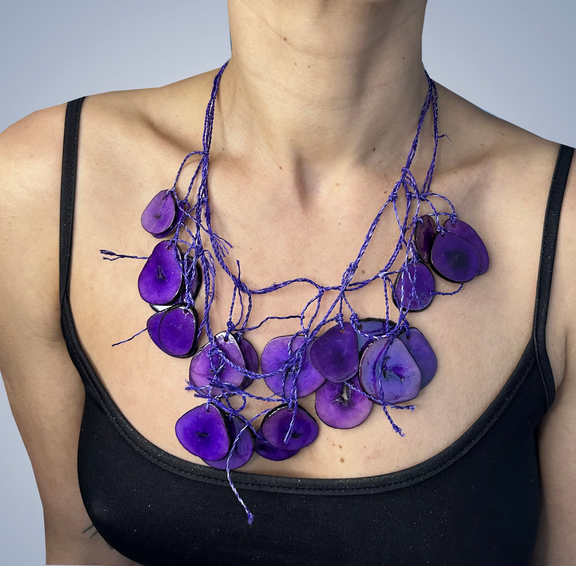 Descubra a magia da natureza transformada em arte com este colar deslumbrante, um tesouro de duas voltas que exala elegância e encanto. O fecho feito de semente de açaí adiciona um toque autêntico, enquanto o fio de tucum tingido tece uma história de cor e textura.