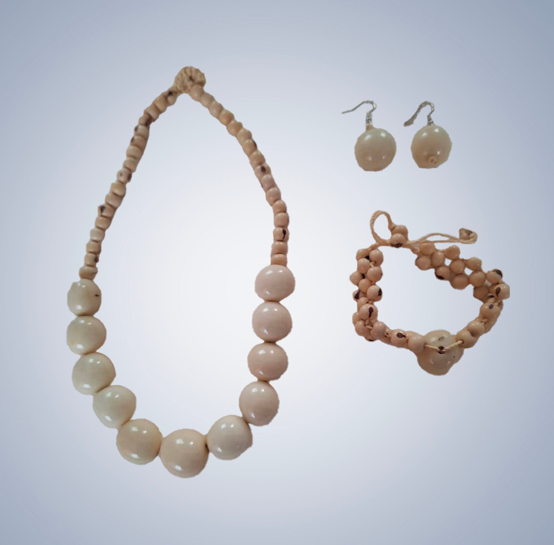 Conjunto: colar, brinco e pulseira sementes de açaí e jarina