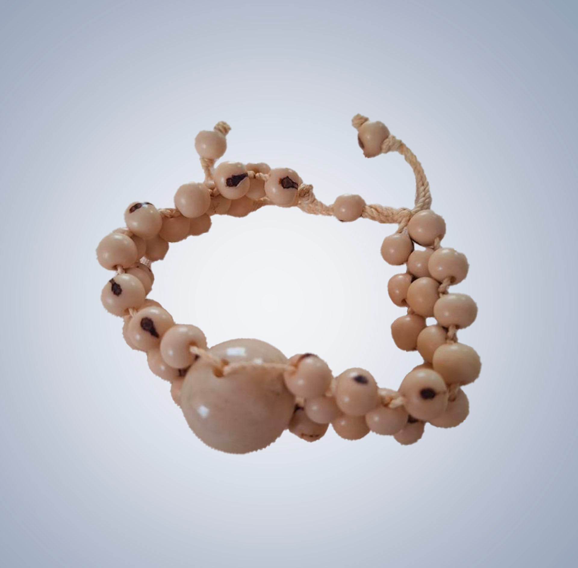 Este colar, brinco e pulseira, tecidos com sementes de açaí e jarina, entrelaçados pelo resistente fio de tucum, não são apenas adornos, mas histórias vivas. Cada peça pulsa com a vitalidade do açaí, a serenidade da jarina e a força do tucum, refletindo a harmonia entre o homem e a natureza.