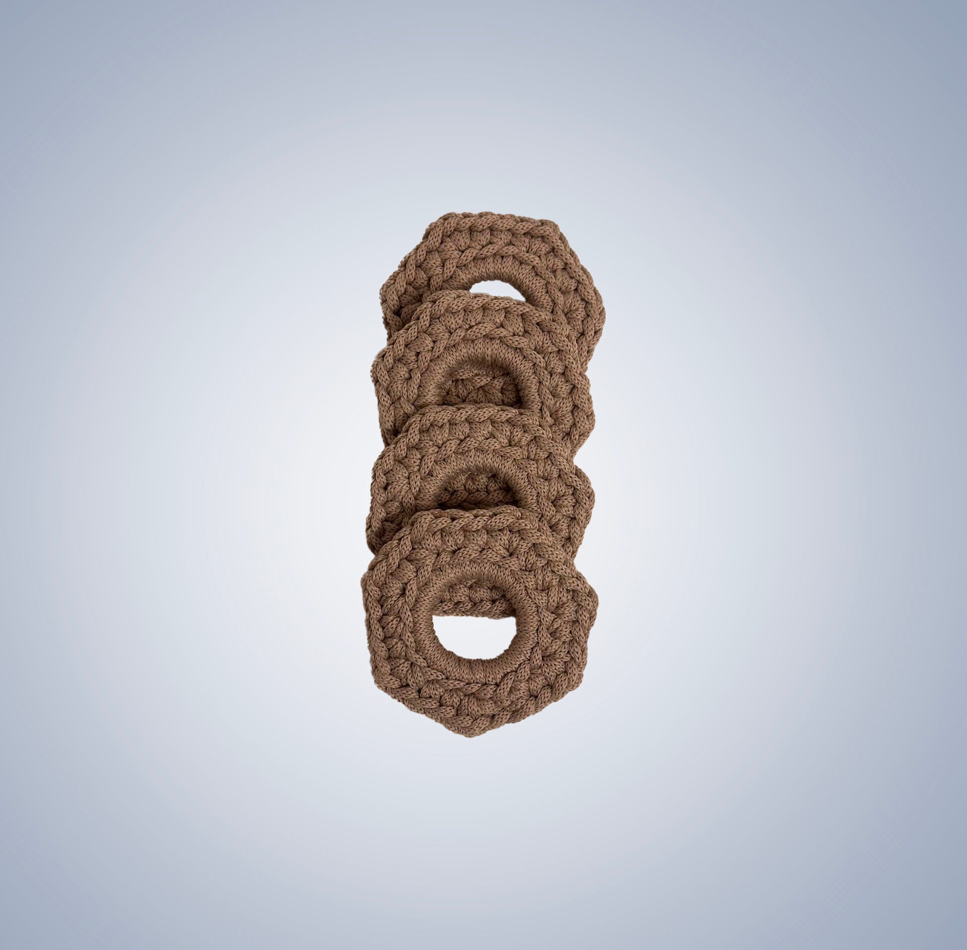 Cada conjunto inclui quatro porta guardanapos cuidadosamente trabalhados à mão, refletindo o cuidado e a paixão pelo artesanato.