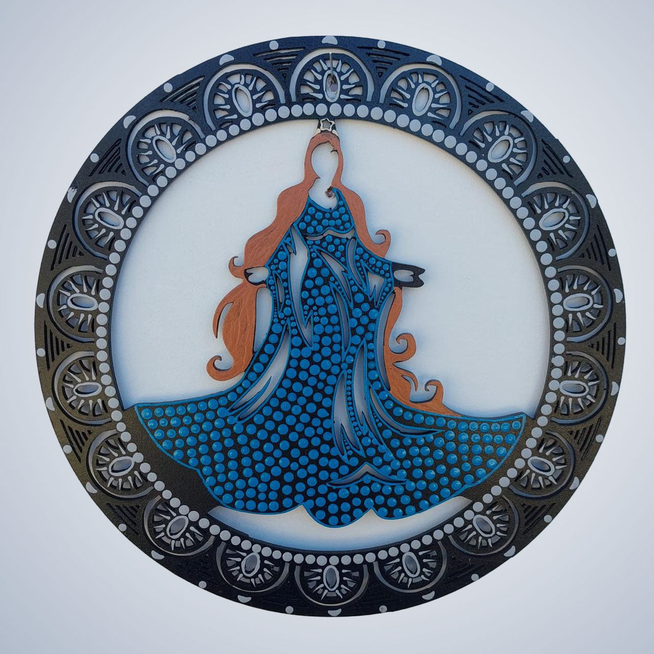 Iemanjá, criada com a técnica de pontilhismo, é uma peça única que combina precisão artística com profundo simbolismo cultural. Milhares de pontos são aplicados com destreza para formar uma representação detalhada e expressiva de Iemanjá, refletindo sua essência como a deusa dos mares, das ondas e da maternidade.