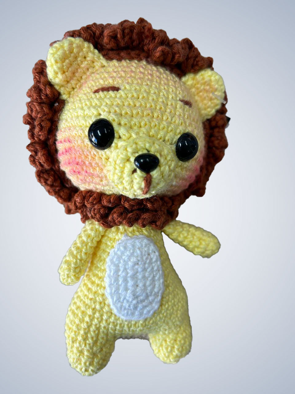 Este majestoso leão em amigurumi é uma verdadeira obra de arte artesanal, feita à mão com carinho e dedicação. Utilizando a técnica japonesa de crochê conhecida como amigurumi, o leãozinho é cuidadosamente confeccionado com fios de alta qualidade e enchimento macio, resultando em um companheiro único, cheio de personalidade e charme.