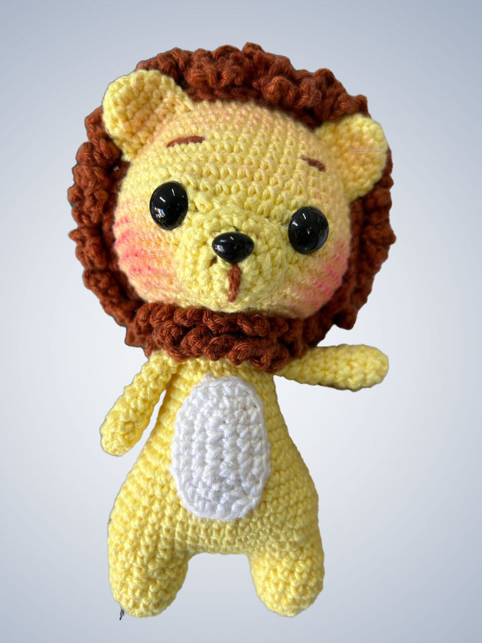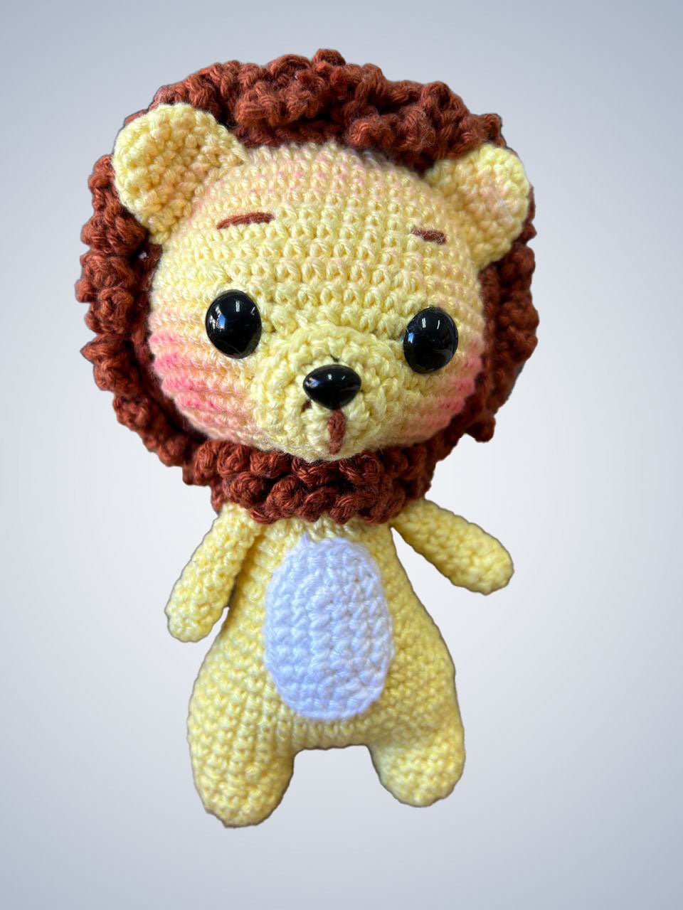 Cada ponto de crochê é feito com precisão, garantindo que o leão tenha uma estrutura firme e durável, enquanto mantém a suavidade e o conforto característicos do amigurumi.