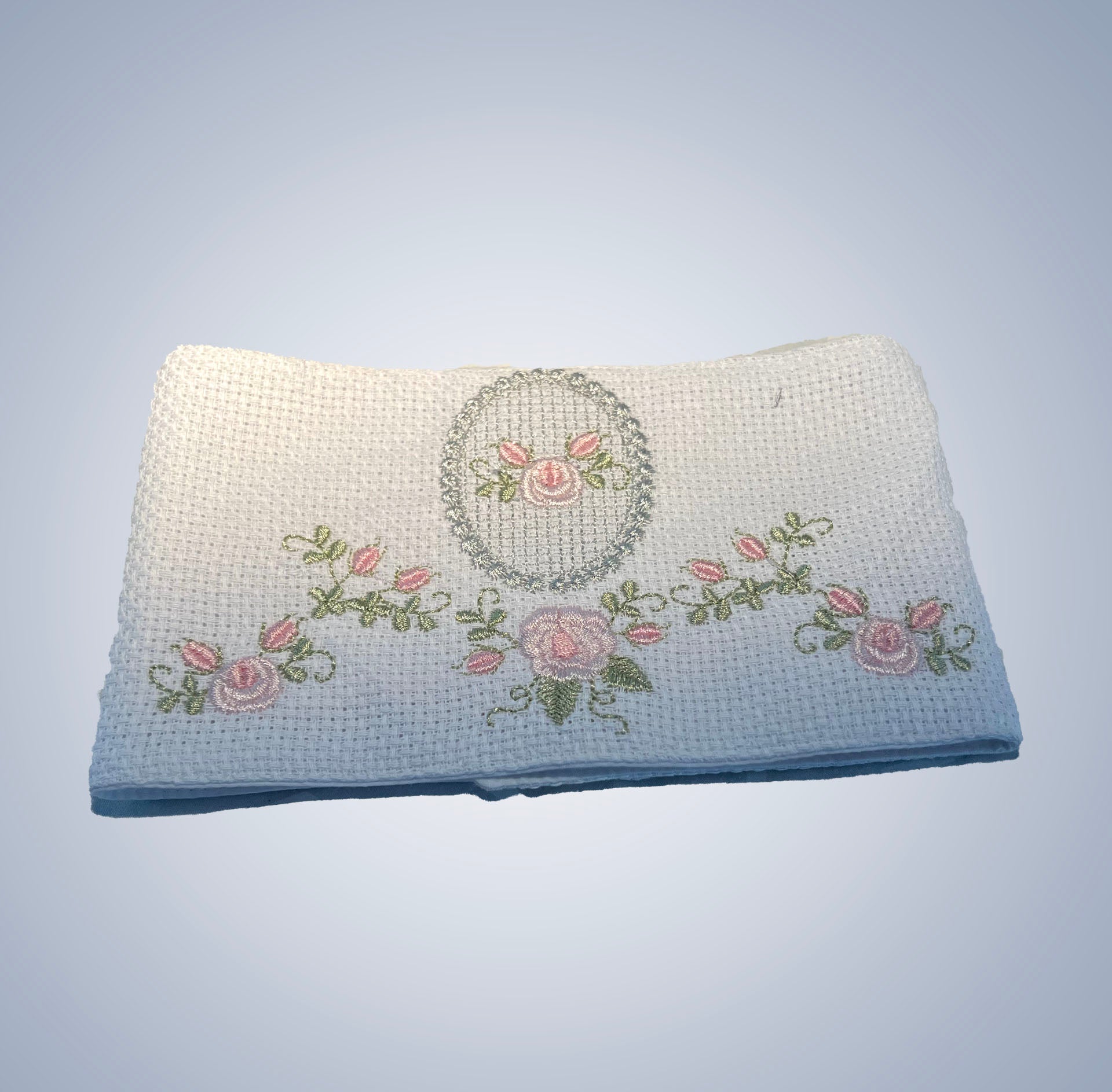 Porta papel higiênico, 100% algodão, bordado Brasão com Rosas