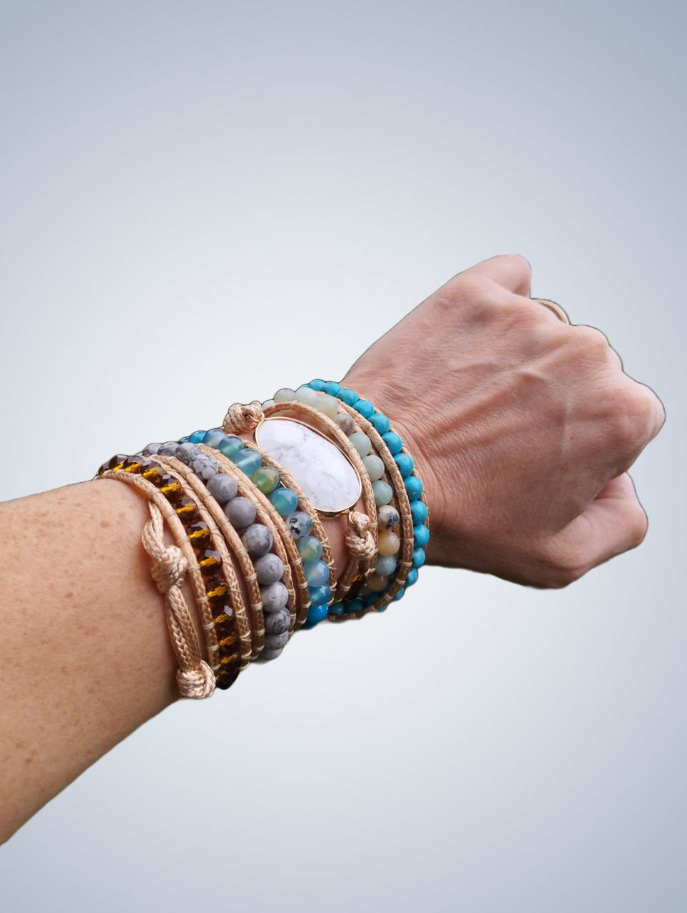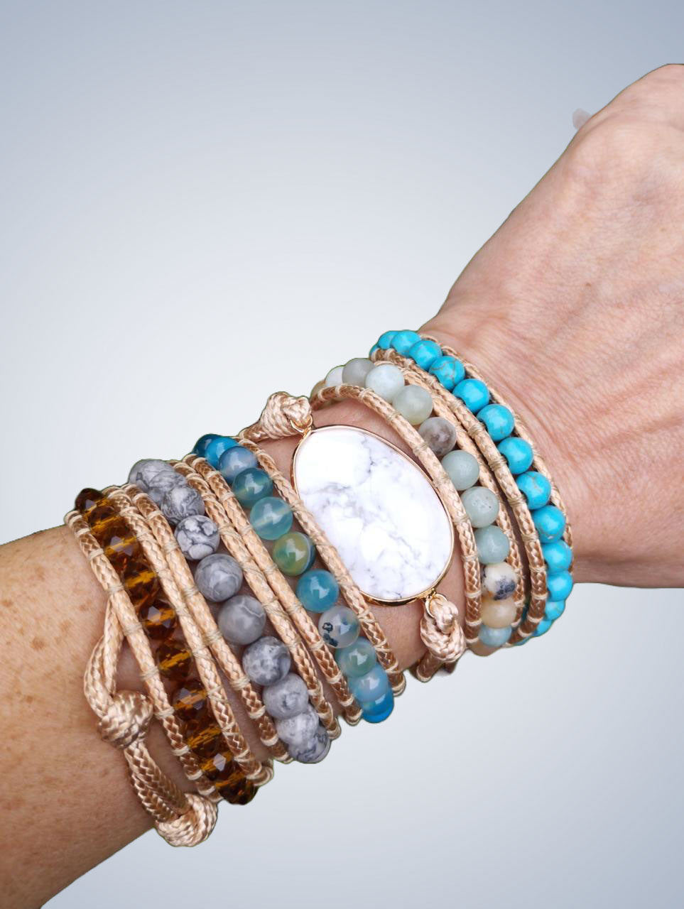 A pulseira de Howlita Branca foi criada com uma combinação harmoniosa de pedras naturais, cuidadosamente selecionadas para promover paz interior, prosperidade, equilíbrio e tranquilidade. Cada pedra carrega uma energia única, que contribui para aumentar a confiança e a fé, trazendo bem-estar ao corpo e à mente.