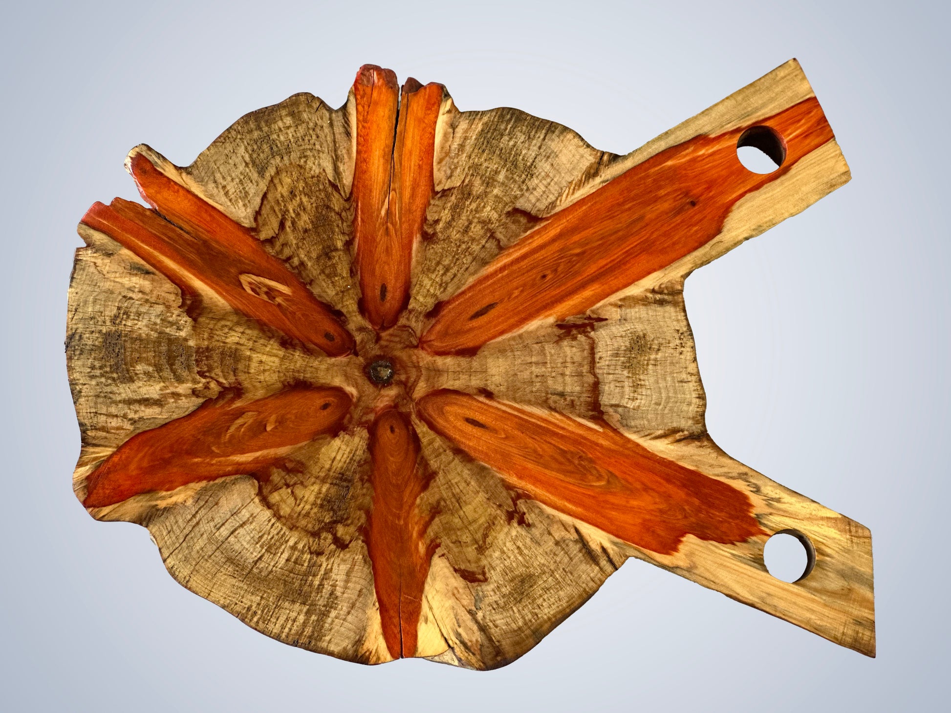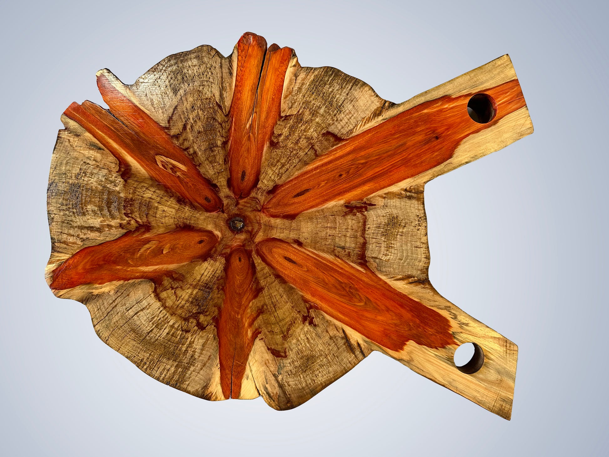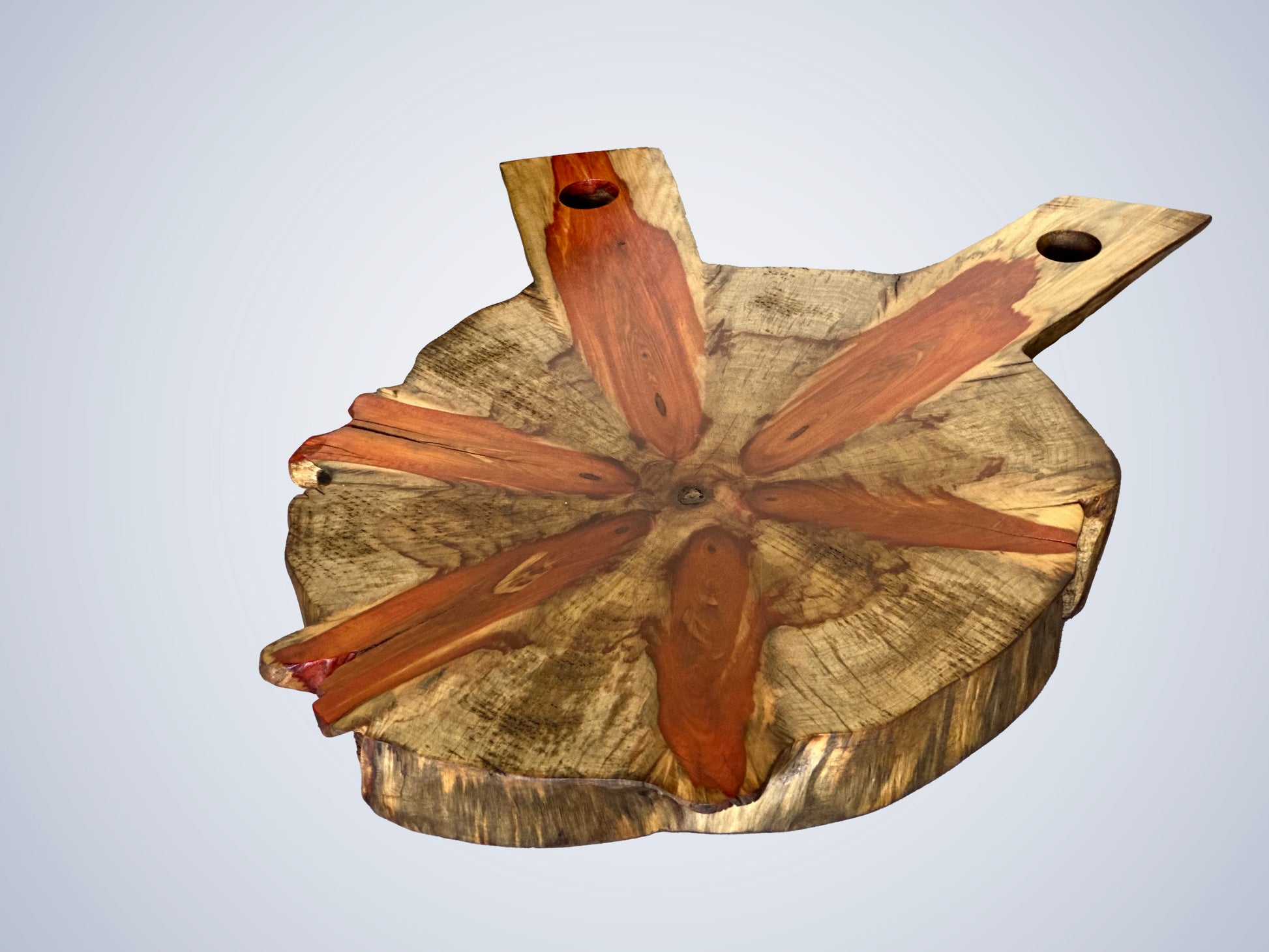 Cada corte revela os anéis de vida desta árvore imponente, trazendo à mesa não apenas um utensílio, mas uma obra de arte funcional.