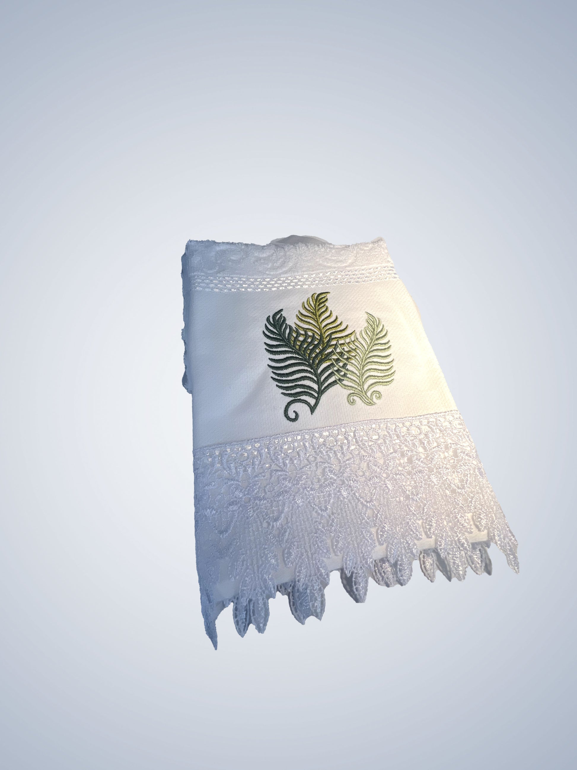 Ao ser exibida no lavabo, esta toalha de lavabo 100% algodão, bordada com o tema Folhas não apenas decora, mas também inspira. Seu design gracioso e simbólico adiciona um toque de charme e sofisticação ao ambiente. Perfeita para presentear ou para complementar sua própria rotina de bem-estar.