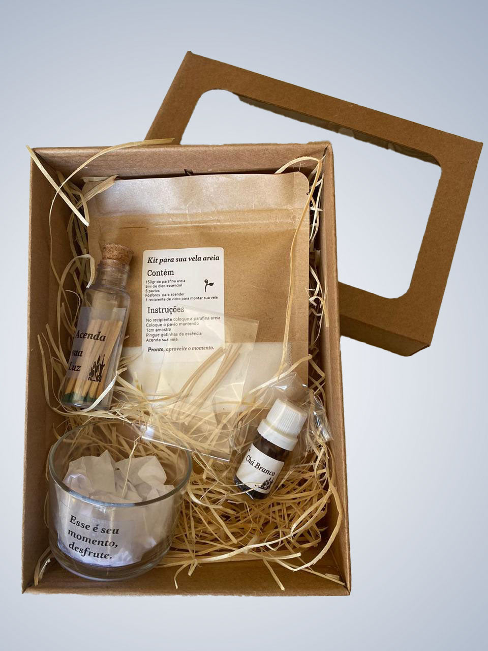 - Óleo essencial: fragrância "Chá Branco", envolvente que tornará sua vela ainda mais especial