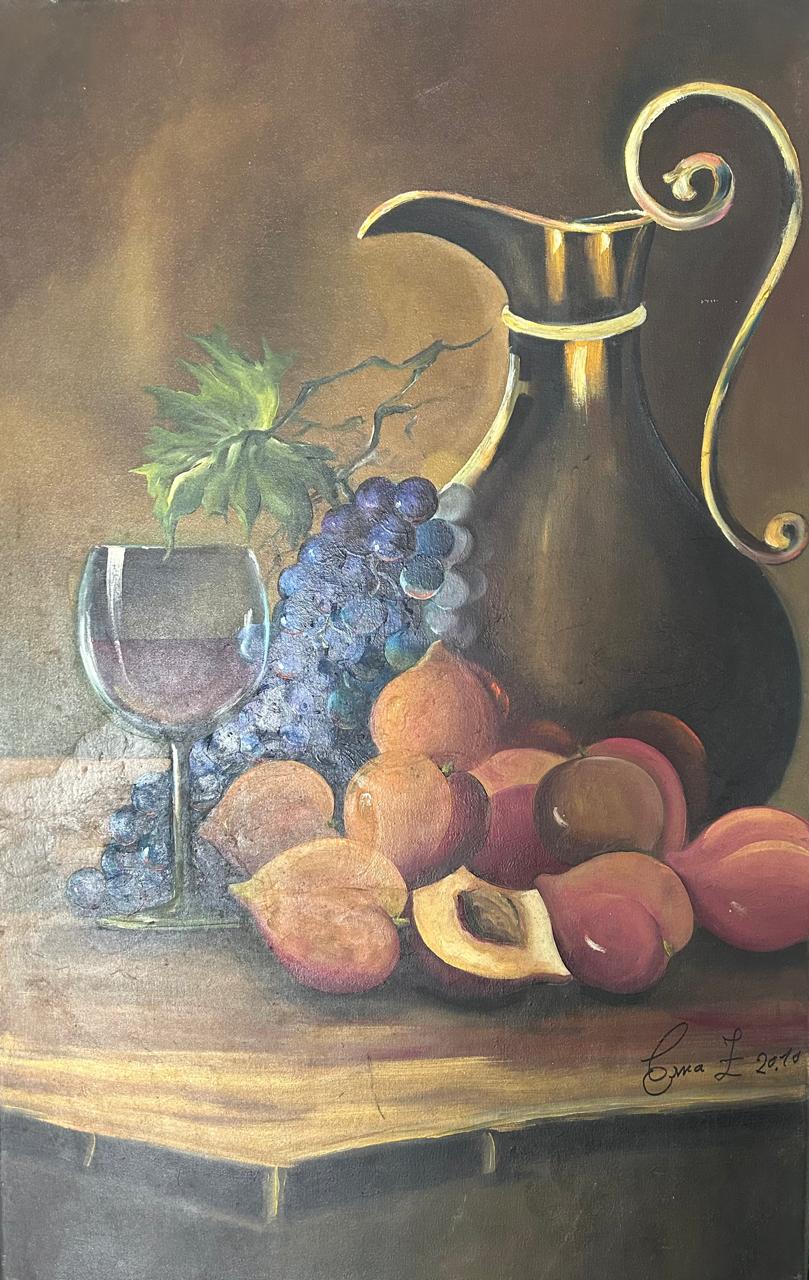 "Vinho e Frutas" convida o espectador a uma pausa contemplativa, celebrando a beleza simples e o prazer dos pequenos momentos. A obra é uma ode ao deleite sensorial e à elegância da natureza, transformando um instante cotidiano em uma experiência visual rica e envolvente.